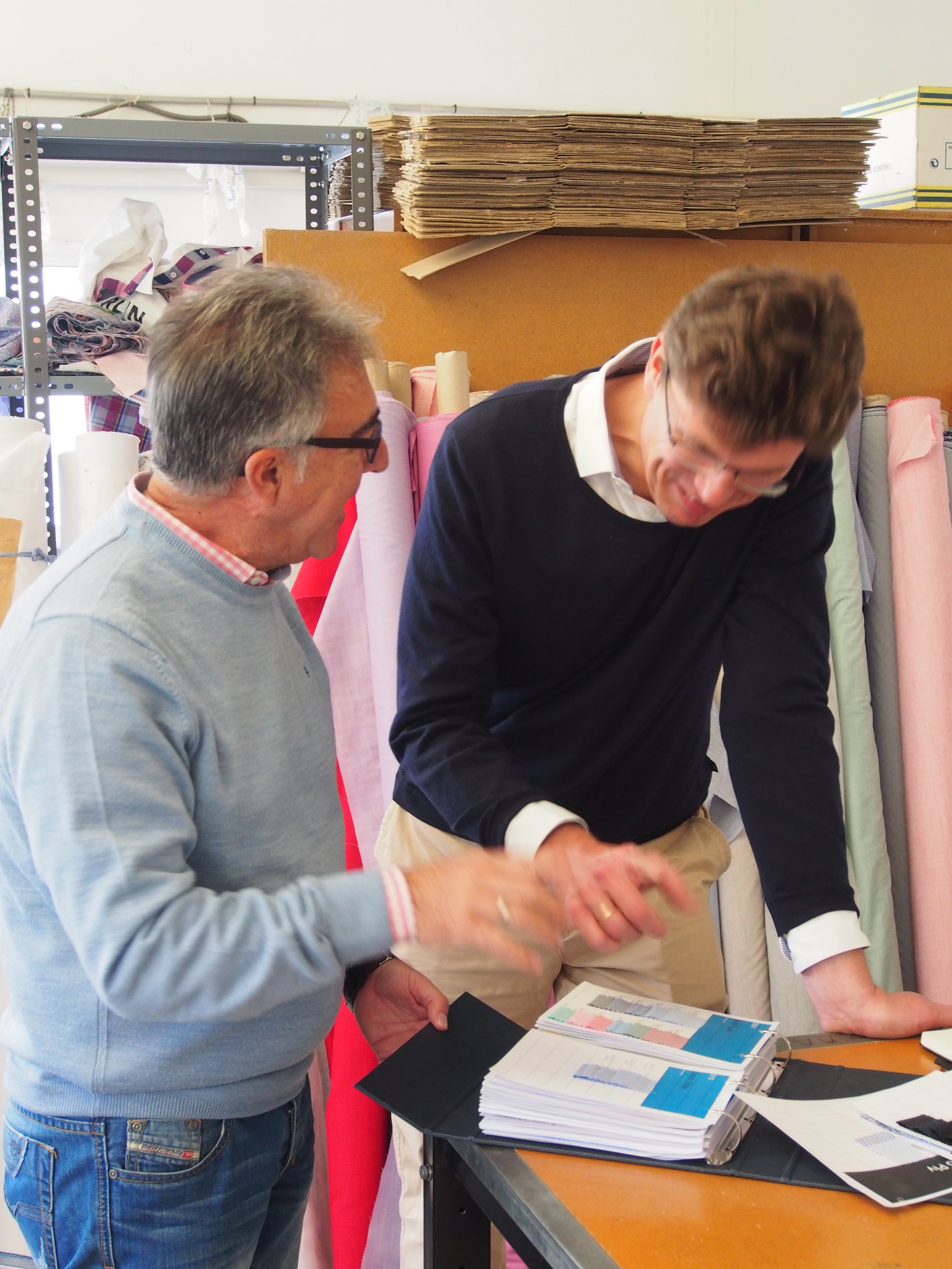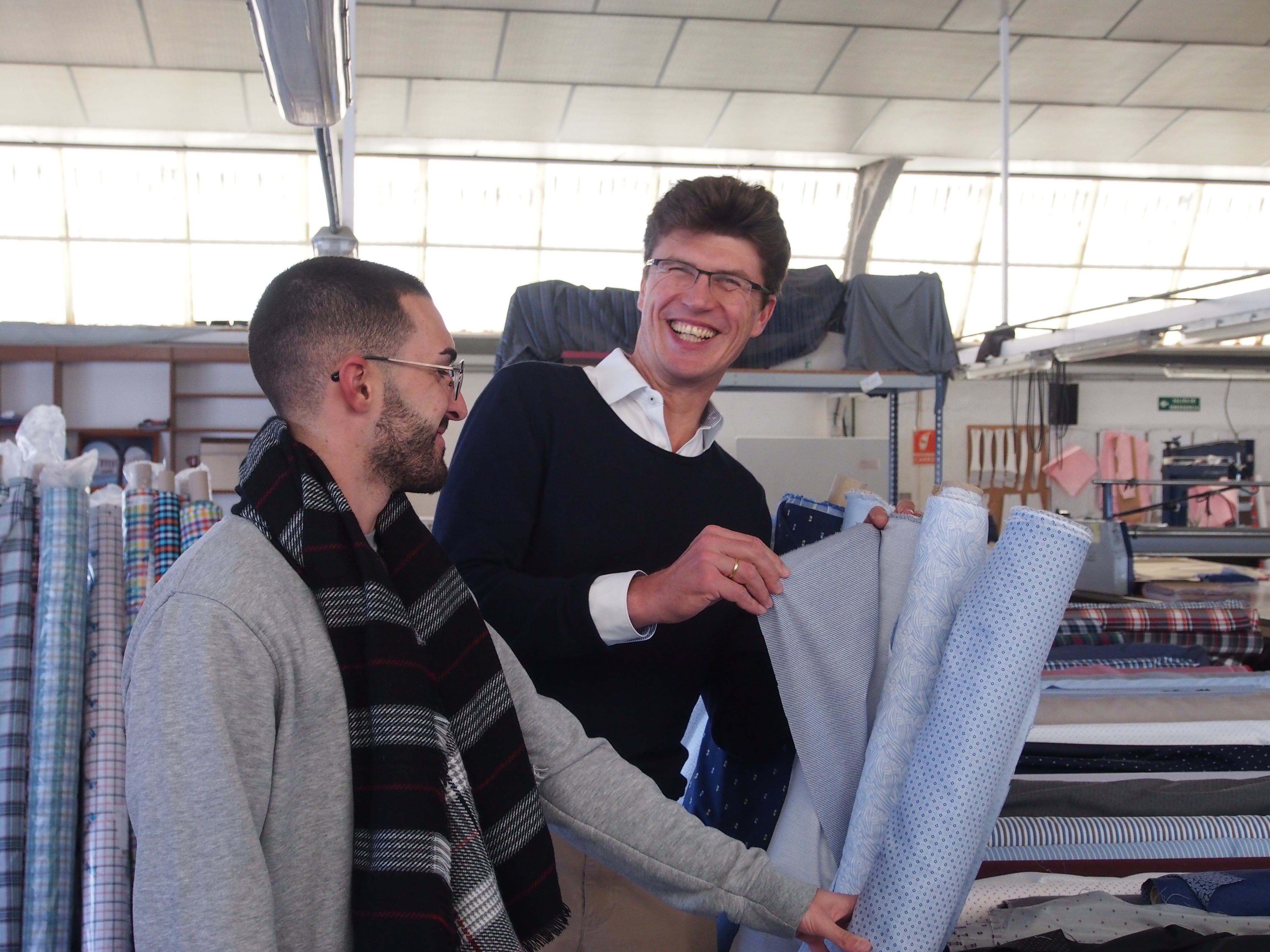 Die Stoffe werden ebenfalls in Spanien hergestellt, und aus europäischer Baumwolle – so vermeiden wir unnötig lange Transportwege. Wir haben uns bewusst für Naturfaser entschieden, weil wir der Meinung sind, dass synthetische Stoffe wie z.B. Polyester bei Hemden nicht wirklich angenehm sind – man schwitzt leichter und der Stoff fühlt sich auf der Haut nicht so gut an.
